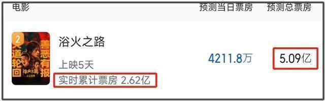 皇冠体育是哪个国家的《浴火之路》可以称为今年国庆档的票房黑马,该片上映五天,拿下了2.6亿的票房,预测总票房为5.09亿,也是业内预测的国庆档票房亚军。据悉,该片的成本大概在1.3亿左右,从目前的票房走势看,这可能是国庆档唯二能够盈利的影片。