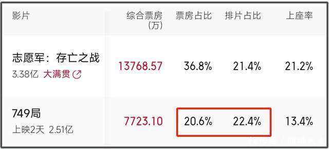 《749局》上映次日,全平台口碑扑街,但是依旧有预售撑着,票房数据还算可以。之后,随着口碑扑街和导演发文等争议的发酵,票房走势越来越差,连续多日票房倒挂。一开始票房占比和排片占比的差距仅在2%左右,后来,票房倒挂最严重的时候,该片的票房占比和排片占比的差距达到了5%左右。