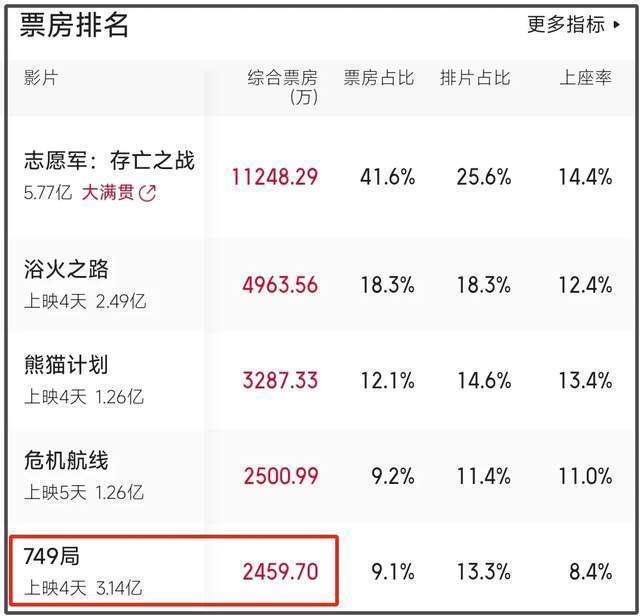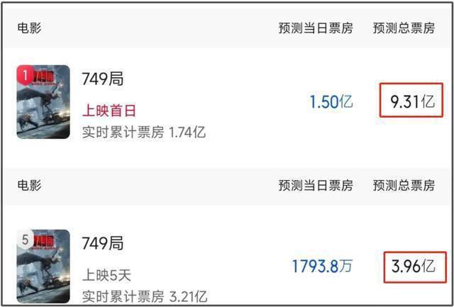 此前,曾有网友在国庆档一众影片上映之前汇总所有影片成本,从网友曝光的国庆档电影成本以及各种爆料中可以了解到,《749局》的成本可能在4-6亿。如果该片的最后总票房不足4亿,这也就意味着该片将会亏本。